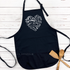 - Print is white on all aprons, print is black on white apron